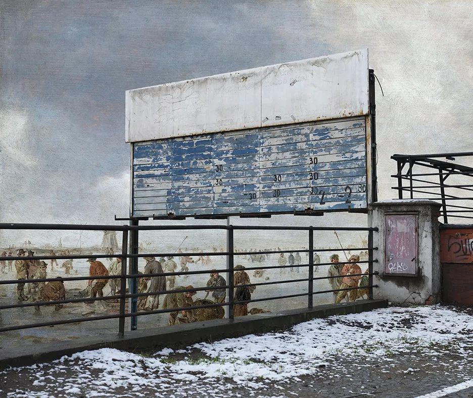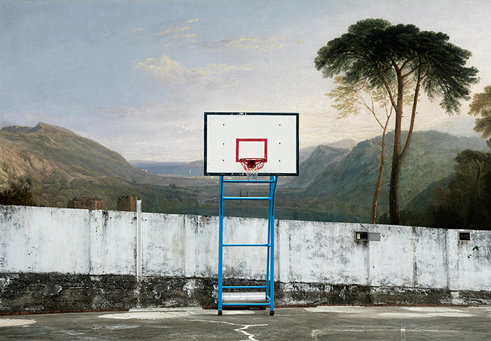 This artwork was shot in the south of Taiwan. The artist infused the work with Aeneas and the Sibyl, Lake Avernus by English Romantic painter William Turner, and slightly adjusted the tone of the sky and the shade between the painting and the photograph. Sports or recreations have become an indispensable part in people’s daily lives. We not only learn and practice them, but also watch, enjoy, and consume them. However, Greek and Roman myths have been disappearing from today’s education and losing their social and cultural positions. So, Turner’s painting disappearing behind the basketball court is an implication by the artist that history is overshadowed by the entertainments of our time.