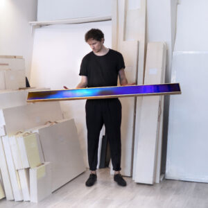 TD: Initially, like many others, I was familiar with the plastic form of dichroic, which can be found, for example, on objects for children. A material that changes colour according to its orientation. But I was looking for a more precious material that would last over time and allow me to work with light in my work. I then discovered this dichroic glass that I now use. It has taken me a long time to really understand the capacities of this material. This glass is the result of NASA research, it has a very high reflectivity index and can therefore be used on satellites or to reflect lasers for example.